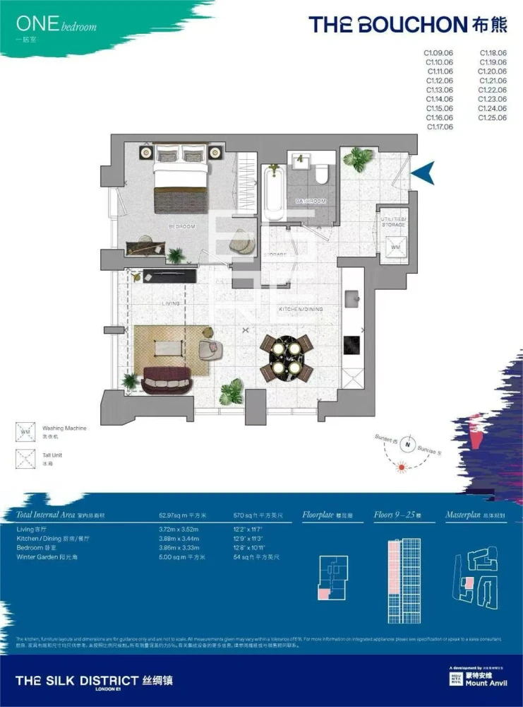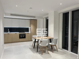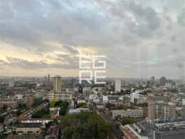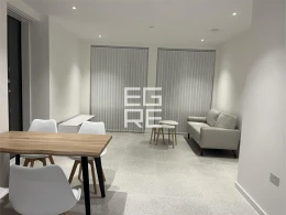 Spanning approximately 570 sq ft, the apartment features a well-proportioned open-plan living and dining area, a sleek modern kitchen with integrated appliances, a double bedroom, and a high-spec bathroom. Floor-to-ceiling windows allow for excellent natural light and far-reaching views across London-s skyline.