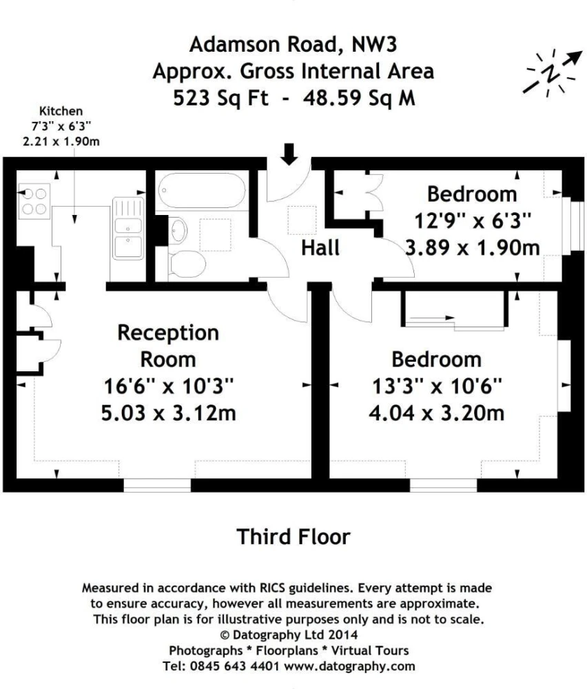 Modern and bright 2 double apartment - Top (3rd) floor in period conversion with lift - Wood floor reception - Separate modern kitchen - Master bedroom with built-in wardrobes - Second double bedroom with storage - Fully tiled 3 piece bathroom - Moments to Swiss Cottage underground - Perfect location for Belsize Park and Swiss Cottage amenities - Council Tax: Camden band E