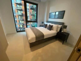 This elegant 2-bedroom, 2-bathroom flat is located in the prestigious Legacy Building within the Battersea Power Station development. The apartment features a spacious open-plan living and dining area with floor-to-ceiling windows, wood flooring, and a fully fitted modern kitchen with integrated appliances. Both bedrooms are generously sized with built-in wardrobes, and the bathrooms are finished to a high standard with sleek, contemporary design. A private balcony completes the space, ideal for outdoor relaxation or entertaining.