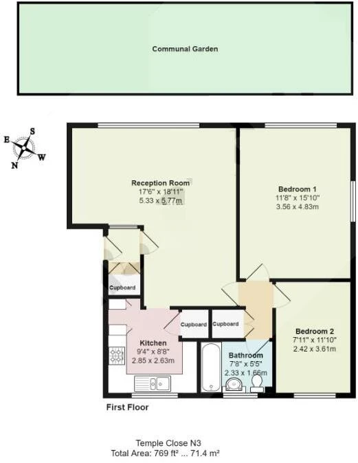 A bright and spacious two double bedroom apartment arranged over the top floor of a popular purpose built block located in Finchley Central. This lovely property has been recently refurbished and comprises, generous reception room, separate fully fitted kitchen, two double bedrooms and a family bathroom. Additional benefits include double glazed windows and communal gardens. Temple Close is ideally located 0.8m from Finchley Central underground station. (Northern Line)