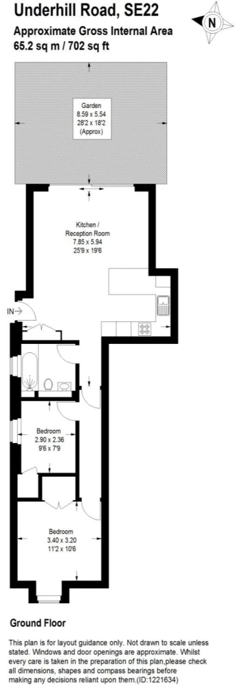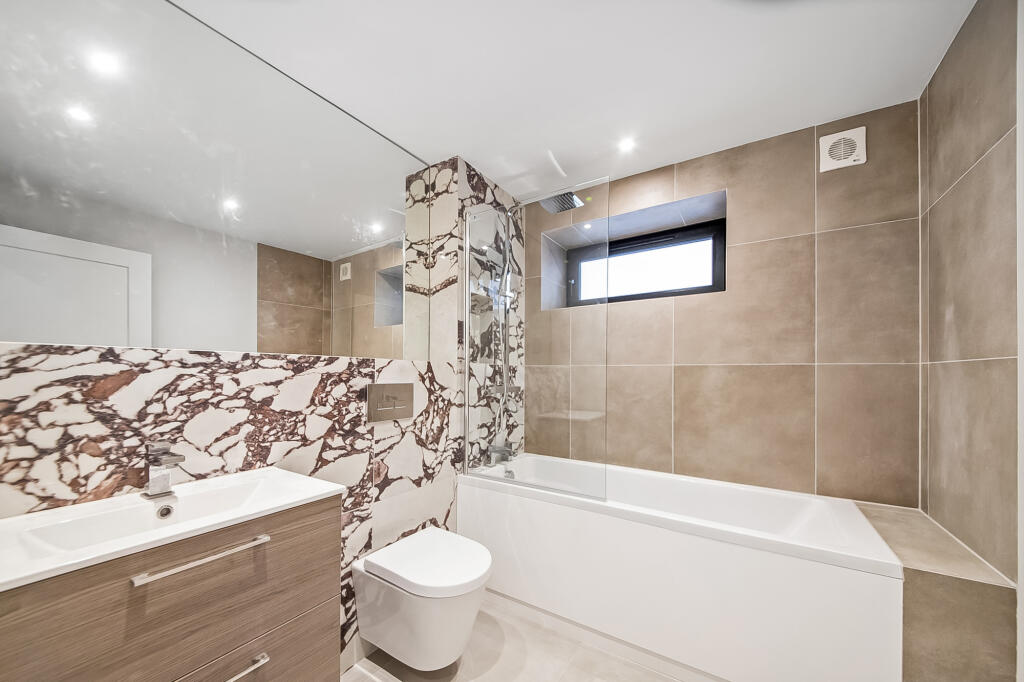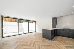 Situated on the sought-after Underhill Road, this ground-floor flat features a spacious open-plan lounge and kitchen area, flooded with natural light from large patio doors that open directly onto a charming courtyard garden — perfect for entertaining or relaxing outdoors.