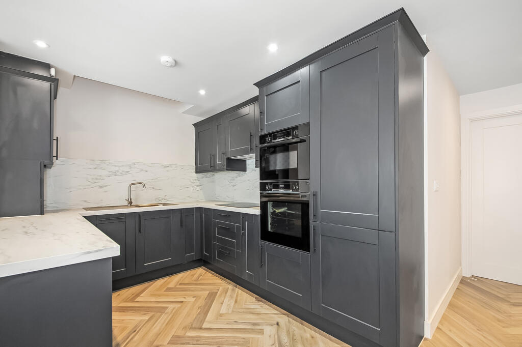 The sleek modern kitchen comes fully fitted with contemporary units and integrated appliances, complementing the clean lines and fresh decor throughout the home. The property boasts two well-proportioned bedrooms, a stylish fully tiled bathroom, and high-quality finishes throughout.