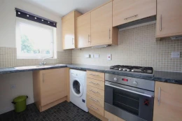 Kitchen - 3.15 x 2.01 (10'4" x 6'7") - Front fitted kitchen with gas hob, electric oven, washing machine and fridge freezer