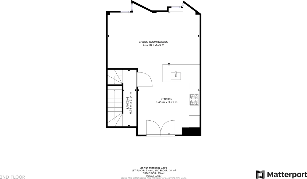Leading up the stairs the property offers a well sized open plan living/ kitchen area with access to a large shared terrace area with fantastic views over Manchester City Centre.