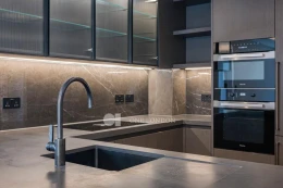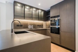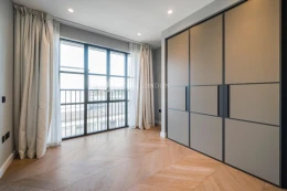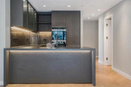 The open plan kitchen and reception room offers spectacular far-reaching views and an abundance of natural light. The apartment further benefits from underfloor heating as well as comfort cooling and a private balcony.