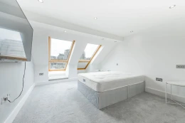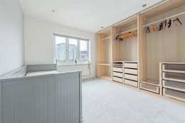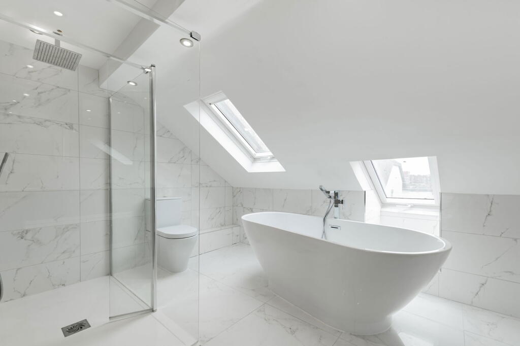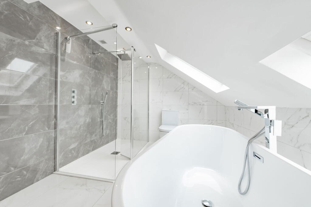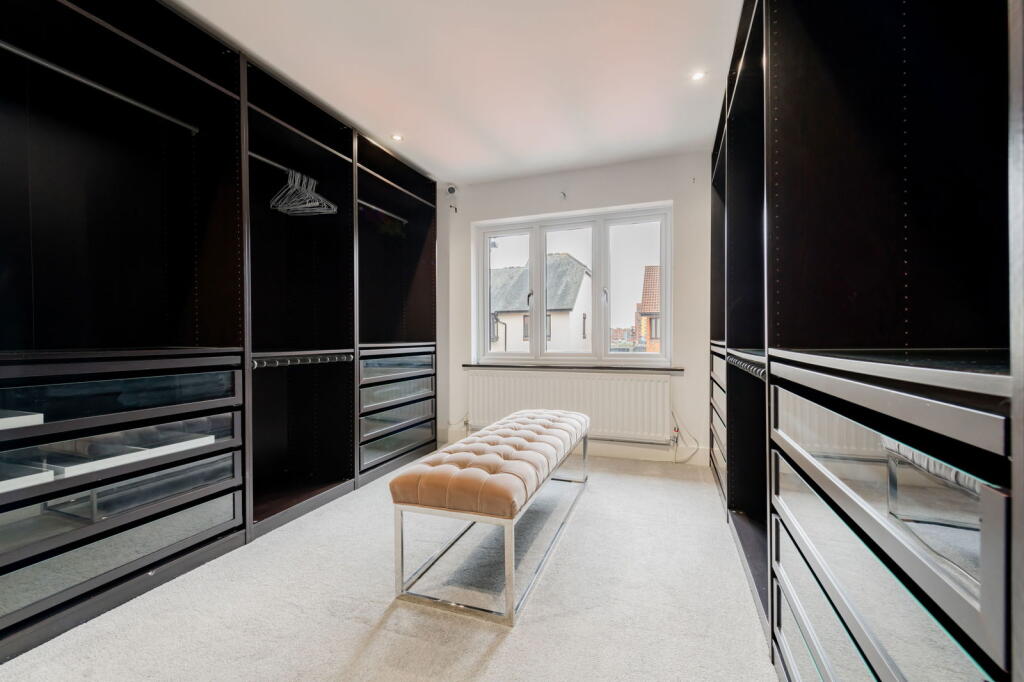 The second floor comprises two double bedrooms, along with a beautifully presented shower room. One of these bedrooms is currently arranged as an opulent walk-in wardrobe, illustrating the flexibility of the space.