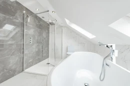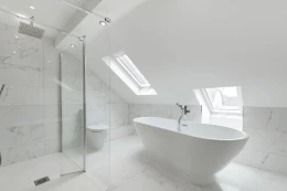 The top floor is home to the principal suite, a stunning sanctuary complete with spa-inspired bathroom, standalone bath, double walk-in shower, and twin sinks. Twin Velux foldaway balconies frame the panoramic views, allowing you to soak in the marina scenery from the comfort of your own bedroom.
