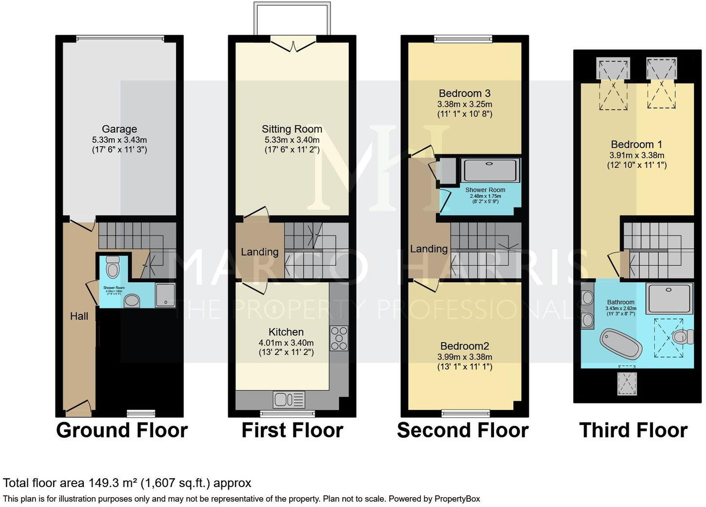 Arranged over four thoughtfully designed levels, this townhouse offers a sense of space and elegance throughout. The ground floor features a welcoming entrance hallway, contemporary shower room, and access to the integral garage, a practical touch that complements the overall luxury feel.