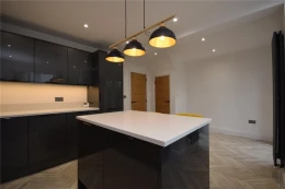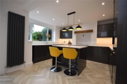 Internally, the ground floor accommodation comprises an entrance hallway with staircase leading to the first floor. The open plan kitchen/diner has a good range of wall and base units, induction hob with electric oven, integrated fridge freezer, dishwasher, washing machine, useful breakfast island and French doors which provide access to the rear garden. There is also a separate living room which has a feature fireplace and window to the front elevation.