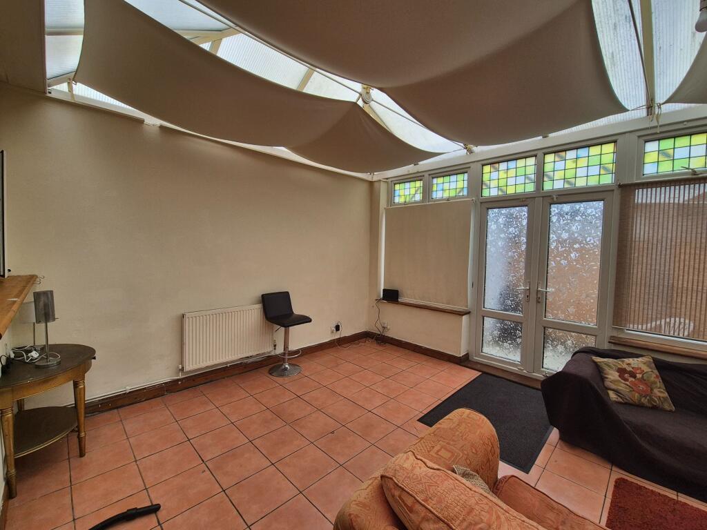 The house features four fully furnished double bedrooms, a spacious and fully fitted kitchen, and a bright conservatory offering additional communal living space. Off-street parking is available, adding further practicality for those with vehicles.