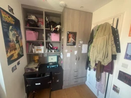 Built-in wardrobes and desks in each room