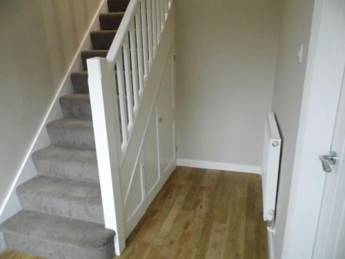 Entrance - newly decorated with large storage cupboard, laminate flooring