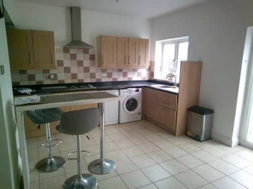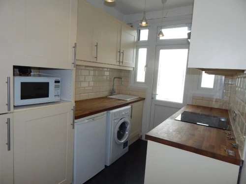 Separate kitchen with oven,hob and extractor, fridge/freezer, washing machine