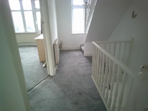 Hall - fitted carpet, storage cupboard
