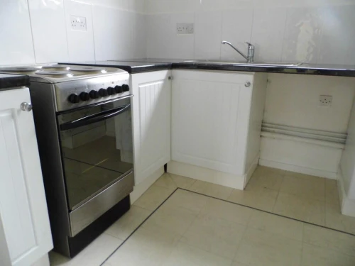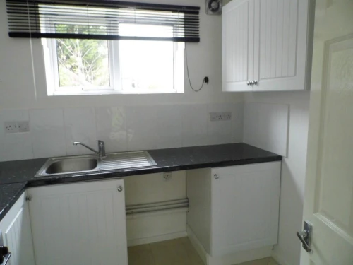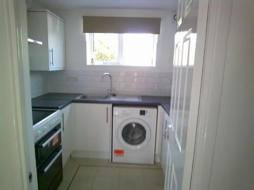 Kitchen - range of units, electric oven, plumbed for washing machine