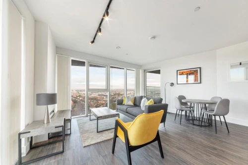 A spacious, modern one bedroom apartment in Icon Tower at One West Point, available to rent from April 2025.