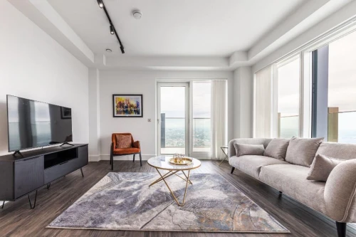 A spacious, modern one bedroom apartment located on the 51st floor in Icon Tower at One West Point, available to rent from now mid July 2025