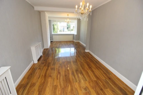 Understairs meter storage cupboard, wood laminate flooring, radiator.
