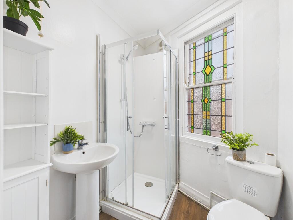 Bathroom - With shower, basin, toilet and bathroom cabinet.