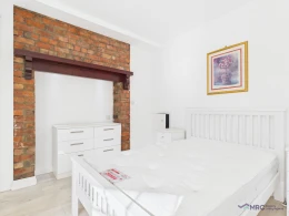 This bright and spacious room offers a comfortable and stylish living space, complete with a double bed and mattress, bedside tables, and a charming decorative feature fireplace that adds character to the room.