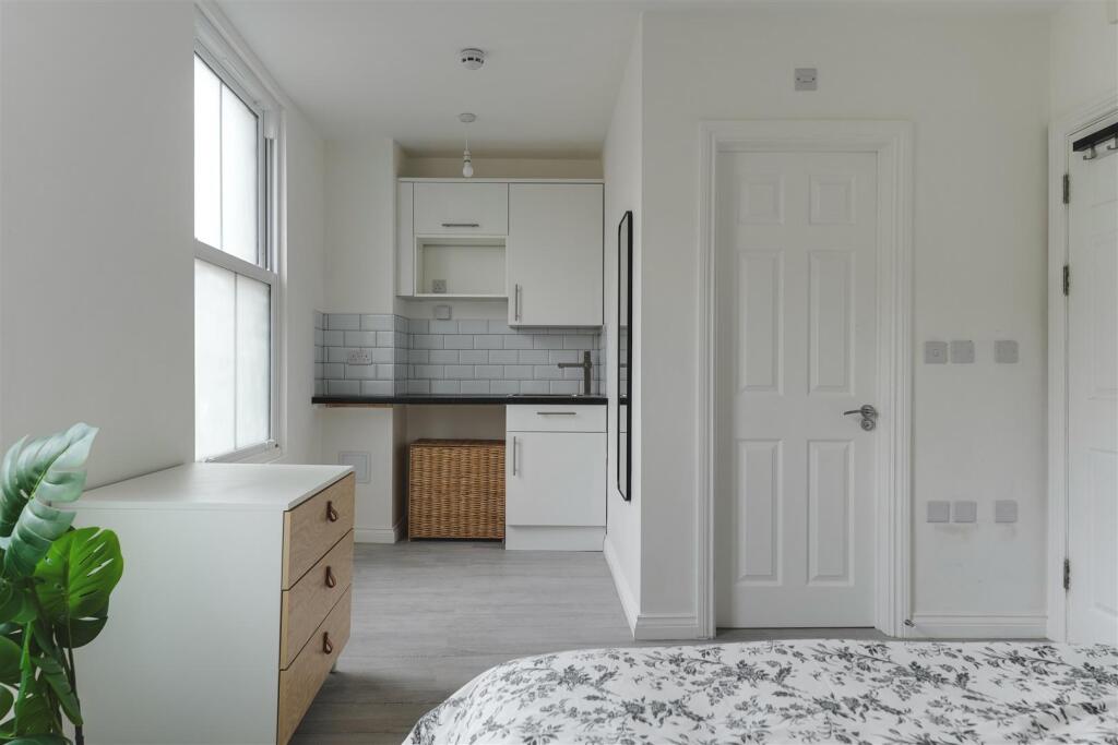 Internally attention to detail has been paramount with sleek lines and modern touches, a fully integrated Kitchenette with fridge space. This well apportioned studio is designed with living/dining space and private shower room. There is also a communal Kitchen  ideal for cooking and entertaining.