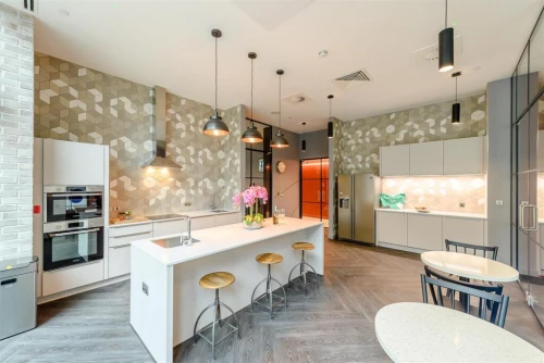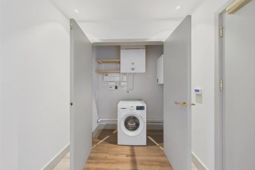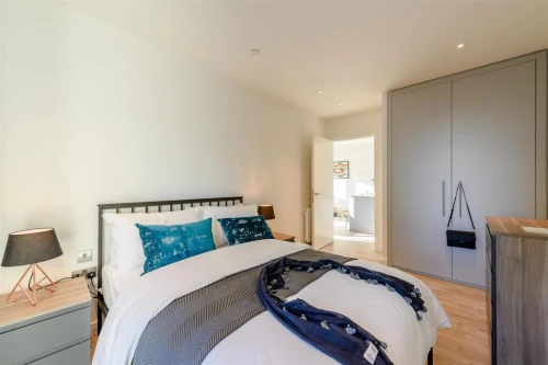 Thoughtfully designed for modern living, this apartment combines relaxed Nordic style with practical luxury. Oak flooring, a striking dark blue kitchen softened by pale accents, and premium Samsung Ch...