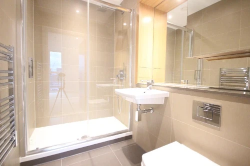 This modern, two double bedroom, two bathroom apartment with a huge living room is ideally located in a quiet and secure block in London Fields!