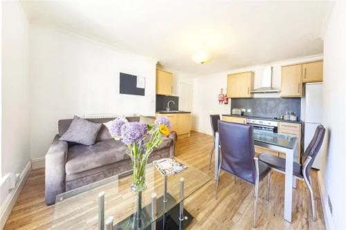 A luxurious interior designed one-bedroom 3rd floor apartment set over 575 SqFt comprising a large open-plan reception room leading onto a private balcony. The fully integrated kitchen with appliances...