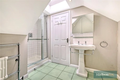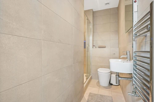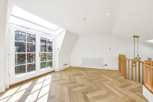 Split between the second and third floor, this duplex two-bedroom, two-bathroom apartment comprises a principal bedroom with en suite bathroom, a second double bedroom with en suite shower room and a ...