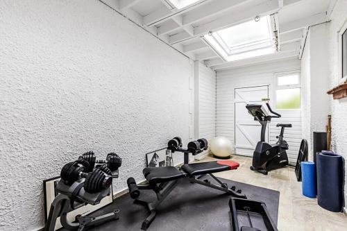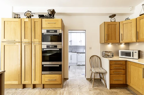 An contemporary four bedroom split level apartment benefiting from a private garden, outhouse and private parking for one car.