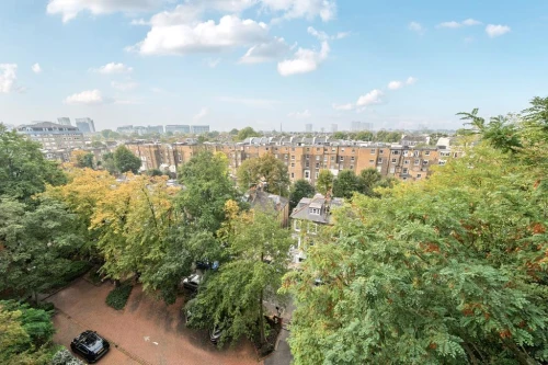 A well presented sixth floor flat with wonderful views over Primrose Hill and the London skyline in this purpose built block with lift, porter and off street parking conveniently situated for Swiss Co...